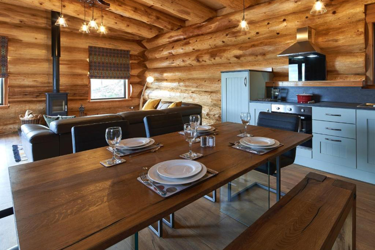 Guests stay in well equipped log cabins designed for a comfortable short break. The interiors provide modern touches and relaxing living spaces, making it easy to settle in after a day exploring the coastline. Private parking is available on site, which is convenient for visitors travelling by car.