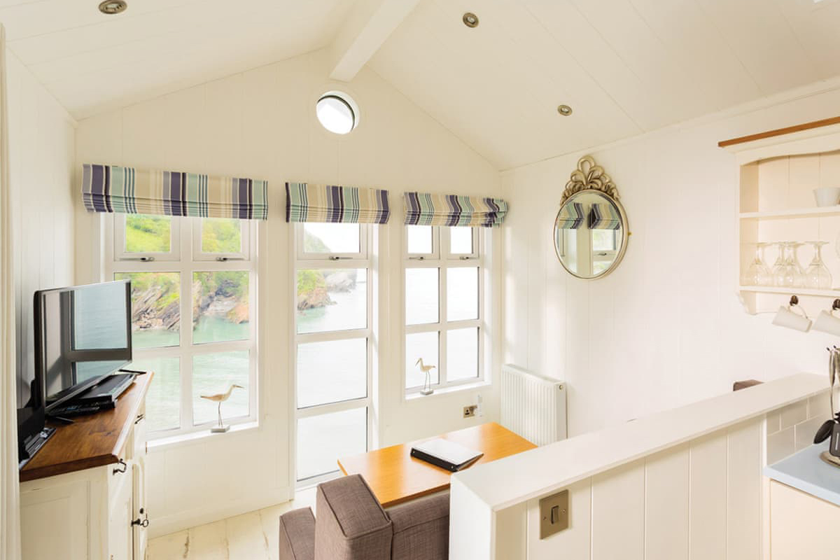 The accommodation includes colourful beach hut style cabins and contemporary apartments designed for two guests. Interiors are modern and comfortable, with open living spaces, kitchens and well appointed bathrooms. Some retreats enjoy views over Hele Bay, while selected Premier options include a private outdoor hot tub for a relaxing evening after a day exploring the coast.