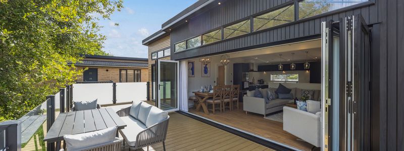 Perfectly positioned on Plot 9, The Hampton enjoys one of the most picturesque settings at Bluebell Park. This beautifully designed lodge combines modern luxury with a bright, spacious layout, fully furnished inside and out, featuring a stylish open-plan kitchen, dining and living area, large windows that maximise natural light, and high-quality finishes throughout.