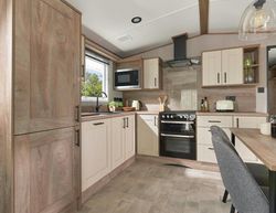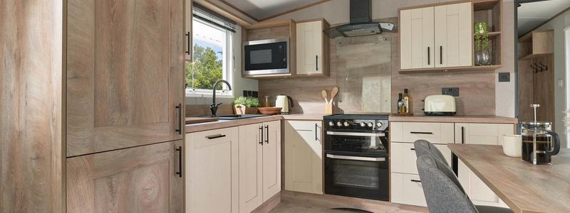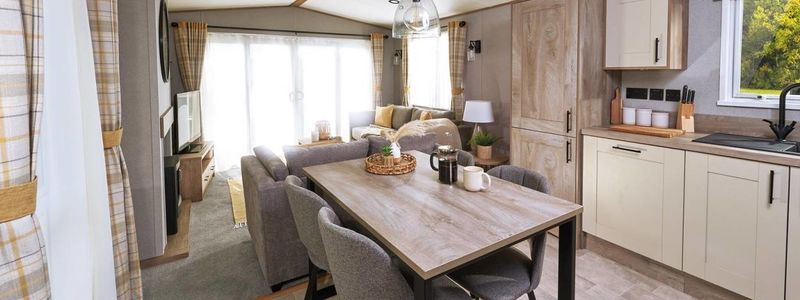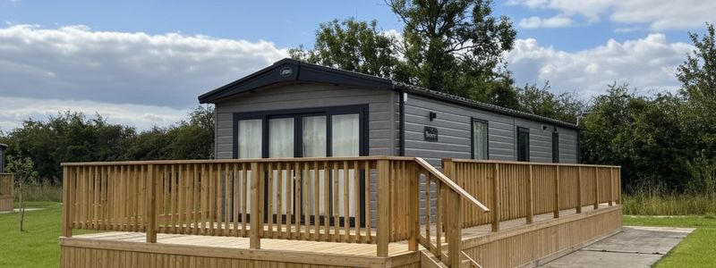 This beautifully maintained, pre-owned two-bedroom, two-bathroom lodge offers refined lakeside living, complete with a private en-suite to the master. Situated on a sought-after lakefront plot, it features expansive wraparound decking and a private fishing pontoon—perfect for tranquil outdoor enjoyment. The lodge comes fully furnished to a high standard and is in excellent condition throughout. Elegant French doors open into a spacious open-plan living area, blending comfort and style with seamless indoor-outdoor flow.