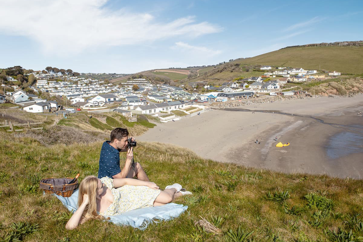 Challaborough Bay Holiday Park sits at the end of a valley beside the sandy curve of Bigbury Bay in South Devon. The park is set right next to a Blue Flag beach with shallow waters, making it a popular spot for seaside holidays. From here you can enjoy views across to Burgh Island and step straight onto the nearby coastal path for scenic walks along the shoreline.