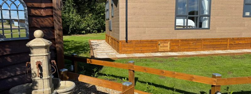 There is a lovely decked area to the front and side of the lodge to take advantage of the sun and shade.