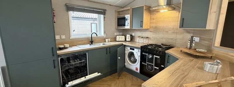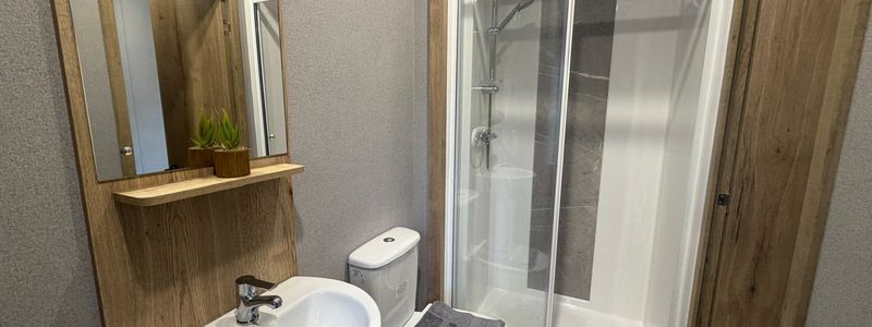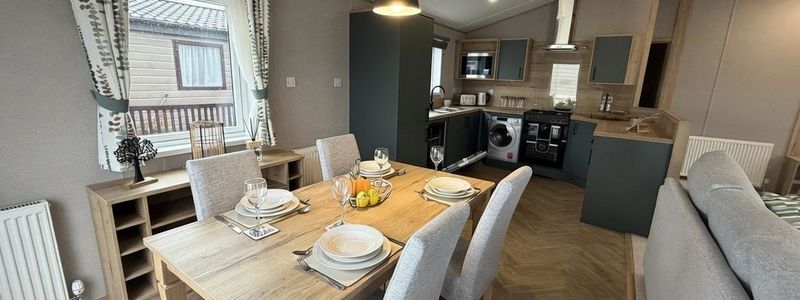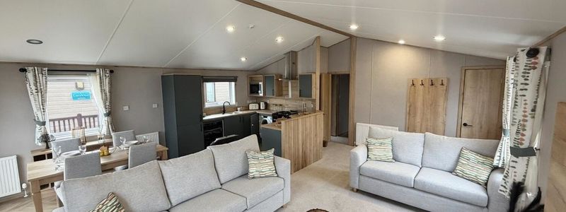 This lodge is situated on a lake view plot on a lodge only area of the park. It has a private double parking bay and includes a full wrap around decking and skirting.