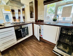 This lodge is the cheapest lodge on park and is nestled on an end of row plot, down an owners only cold-e-sac. It has a double tarmac driveway and full wrap around decking and skirting.