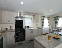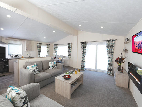the Delta Lakeside is a modern and stylish holiday home located at Landscove Holiday Park. The large, spacious kitchen is a delight to use, perfect for home-cooked meals in the evening, or a small lunch on the large decking area. The neutral colour scheme adds to the cosy, coastal charm of the home, creating a relaxing environment throughout. The twin bedroom is convenient for family and friends, and the full-sized bath and shower in the contemporary bathroom is stylish and luxurious