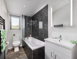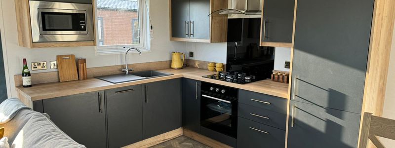 With a sophisticated blend of greys, oak finishes and navy blue feature walls, it strikes the perfect balance between neutral tones and stylish flair. Its thoughtfully designed interiors offer a sense of understated luxury, making it the ideal lodge for those who appreciate quality and elegance.