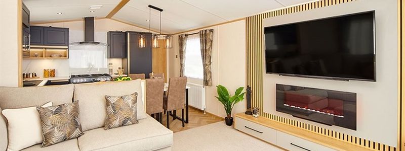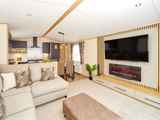 Immerse yourself in a luxurious lounge featuring patio doors and a grand corner sofa including a pull-out daybed. Space for a 65” TV and flame effect electric fire offer the perfect area to entertain guests or relax!!
