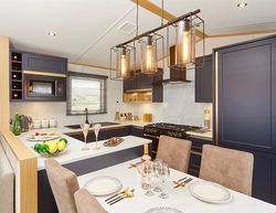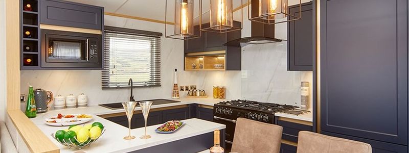 Step inside the Chantry Lodge kitchen and you’ll be greeted by a sophisticated colour palette; wooden tile patterned flooring, brushed gold inlays and matt finish doors. The marble-effect worktop and glass splashback all blend to form the perfect space to prepare a feast, you’ll find a branded microwave, fridge freezer and dishwasher with ample space to add an optional washing machine.