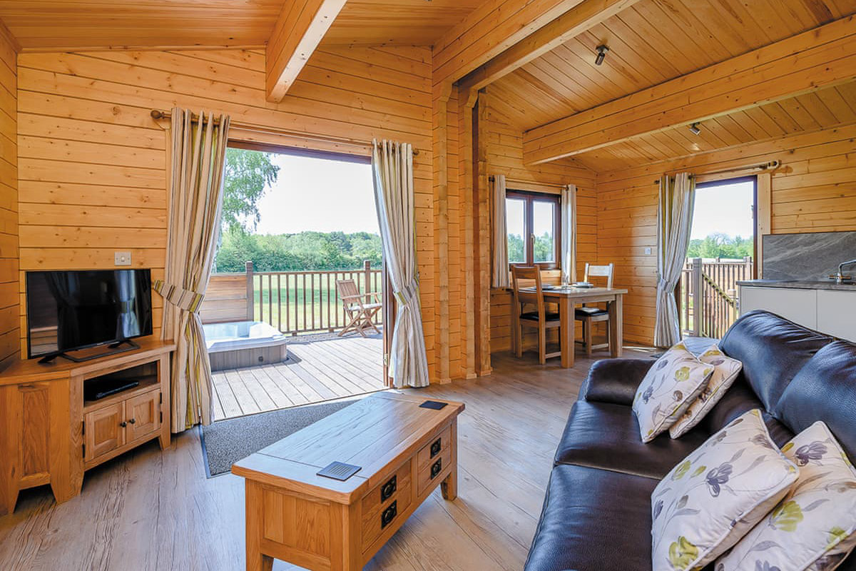 Choose from spacious Scandinavian-style lodges with one, two or three bedrooms. Each lodge includes a private outdoor hot tub, open-plan living space and a fully equipped kitchen with modern appliances. Expect comfortable beds, quality linens, decking with outdoor furniture and thoughtful extras like bathrobes and WiFi throughout.