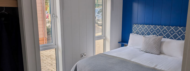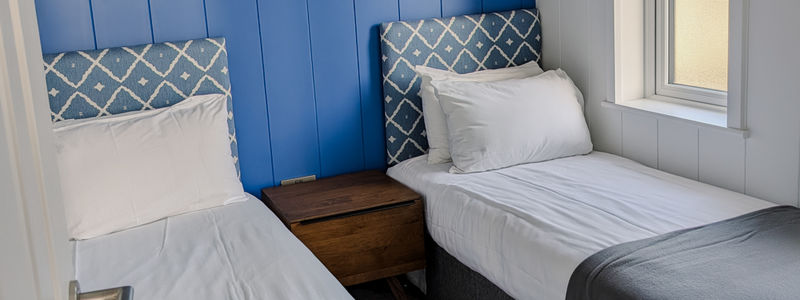Both bedrooms are cosy with soft carpeting and subtle coastal styling. The master includes a walk-in wardrobe and en-suite, while the second bedroom offers twin beds and smart storage.
