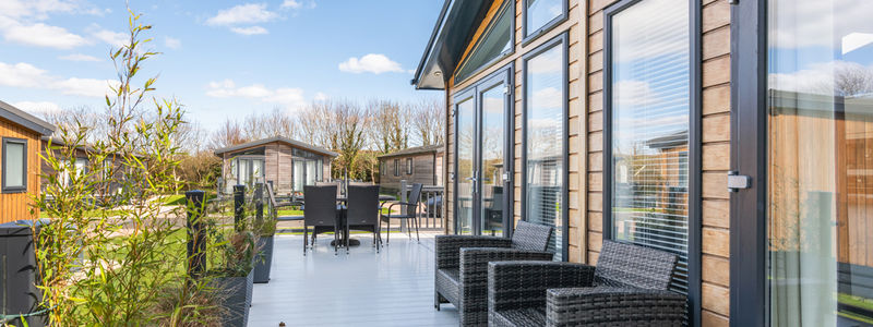 This 3 bedroom lodge sits on Jurassic Retreat, a small and exclusive luxury lodge development at Larkfield. The pitch comes with a large decking and is surrounded by plenty of grass space.