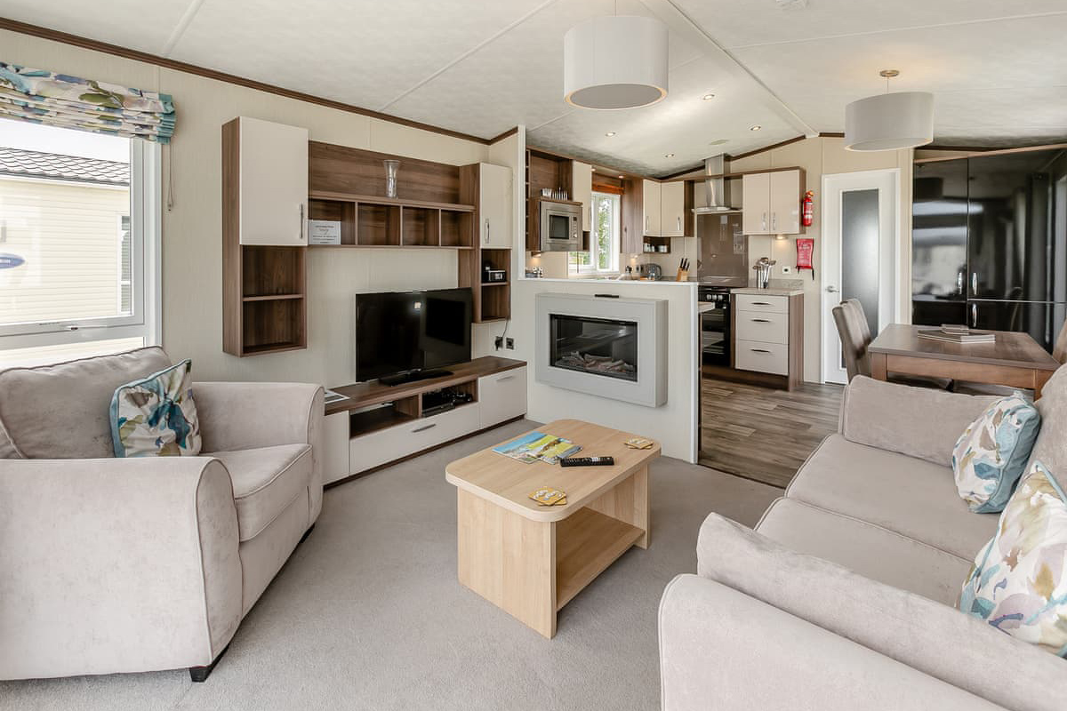 The site offers two and three bedroom holiday homes with open plan living, dining and kitchen space. Some homes include outdoor hot tubs on the decking and garden furniture for a chilled stay. Interiors mix modern design with practical comfort, and most homes offer WiFi and quality entertainment.