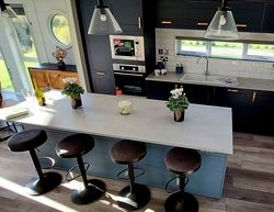 The vaulted ceilings, panelled walls and floating mid-wall in the main bedroom offer a charming boutique style that is elegant and peaceful.