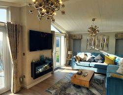 With its sleek exterior, long slender windows, feature cladding, and central dormer, this lodge makes a stunning first impression. French doors in the lounge open onto a spacious anthracite grey deck—ideal for soaking up the peaceful countryside, from morning coffee to sunset views.