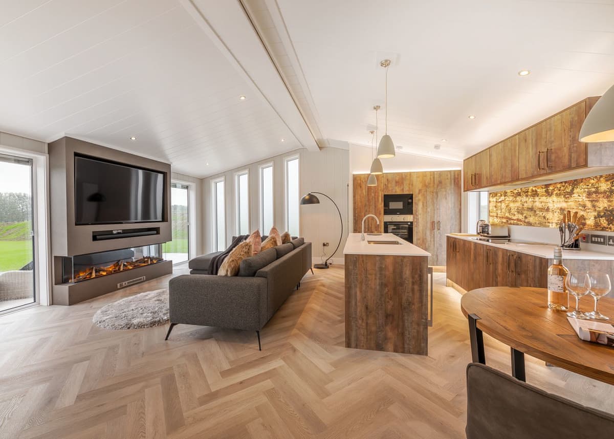 The lodges are modern, spacious and thoughtfully designed, featuring comfortable open plan living areas, well equipped kitchens and cosy lounges. Many lodges include private outdoor hot tubs, providing a perfect place to unwind while taking in the far reaching views across fields and woodland. Free Wi Fi and smart entertainment features are included to make your stay easy and comfortable.