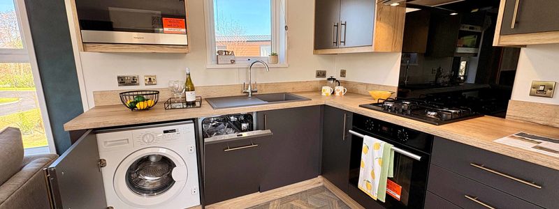 Upon entering the Norwood, guests are welcomed by a convenient bench seat equipped with coat hooks, ideal for removing shoes and storing outerwear.The open-plan living area features a well-appointed kitchen, complete with an integrated microwave, fridge/freezer, 4-burner gas hob, electric oven and grill, as well as ample storage space.