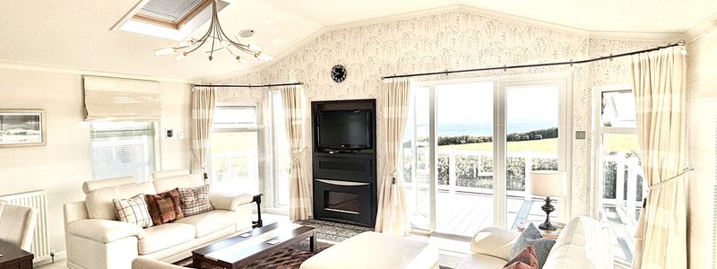 This beautifully designed two-bedroom lodge offers a spacious open-plan lounge, with large windows that flood the space with natural light and frame the spectacular coastal views.