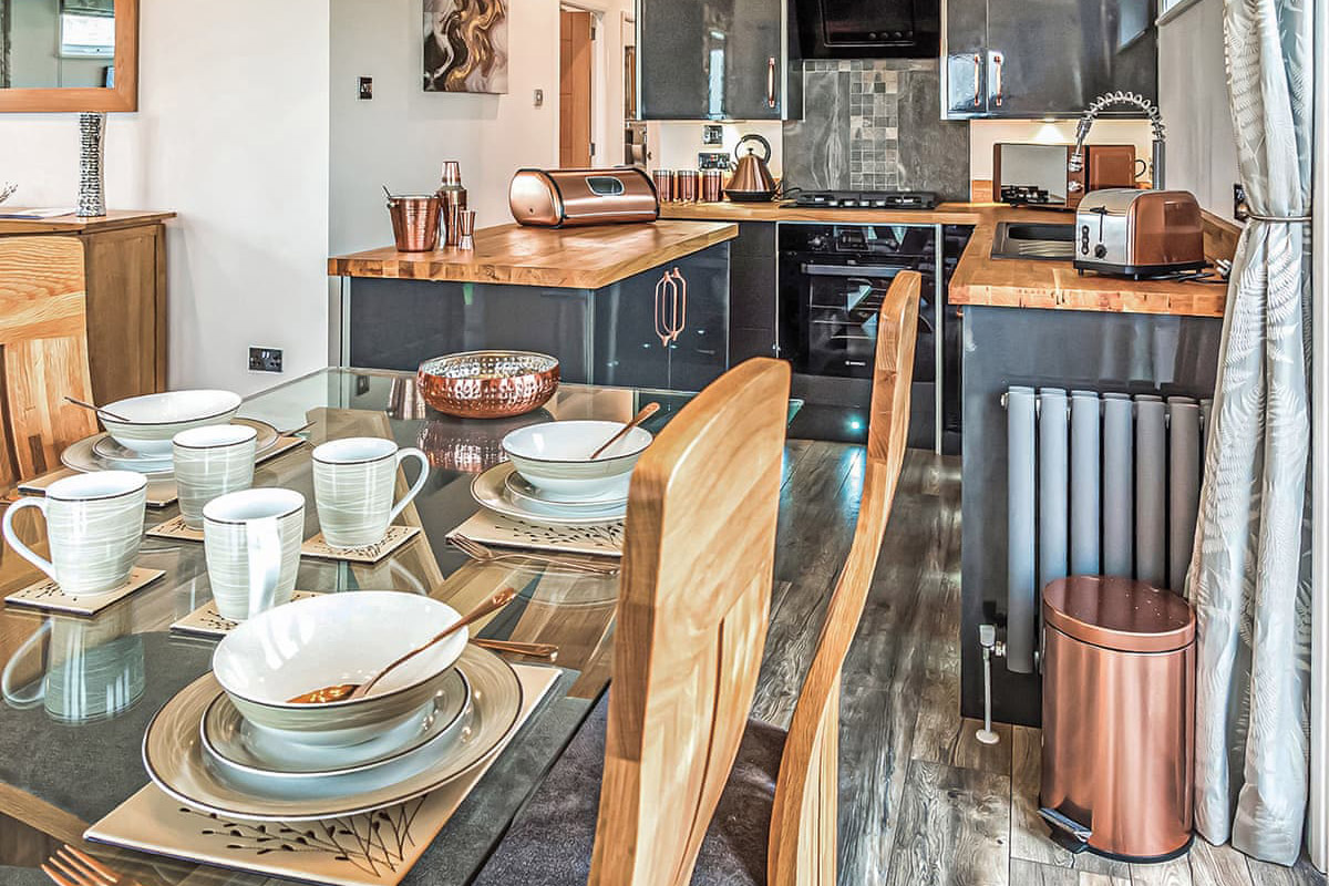 The park offers a range of modern lodges and well equipped holiday homes. Options include two and three bedroom layouts with kitchens, heating and comfortable living spaces. Selected lodges provide added space and stylish interiors, with some featuring verandas for outdoor seating.