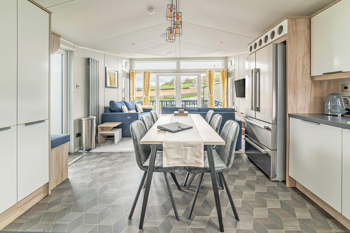 Accommodation focuses on stylish two-bedroom lodges designed for couples or small families. Expect open-plan living spaces, fully equipped kitchens and private decking with countryside views. Many lodges include outdoor hot tubs and some feature saunas, while pet-friendly options are also available.