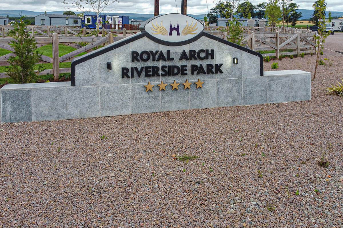 Royal Arch Riverside Park sits in the rolling countryside at the gateway to Royal Deeside in Aberdeenshire Scotland. This friendly holiday park has a relaxed feel with luxury lodges that make you want to kick back by the river or on your deck with a private hot tub.