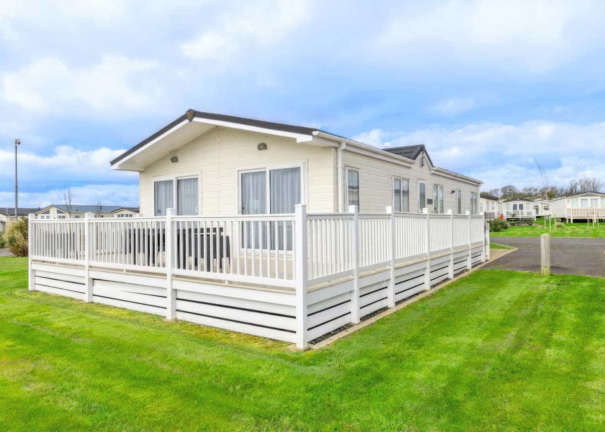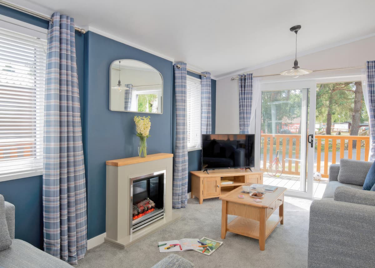 Lodge available for holiday rentals sleeping up to 8 people, modern and open plan living area with well-equipped kitchen, dining and sitting area.