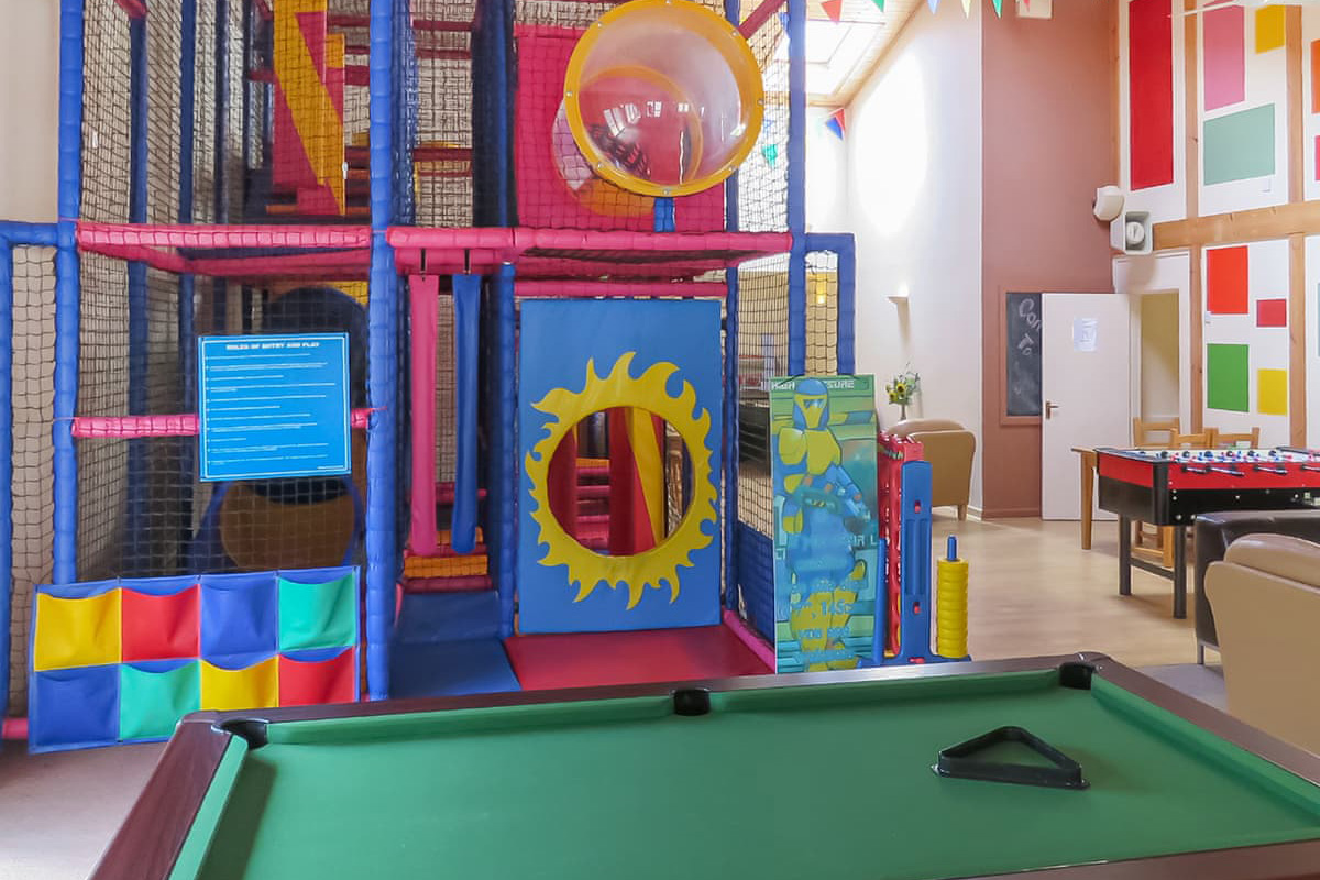 The park has plenty to do without leaving the gates. There is an outdoor swimming pool open in summer, indoor play spaces and a mini golf area for light hearted competition. A café, bar and welcoming communal spots make meeting others easy.