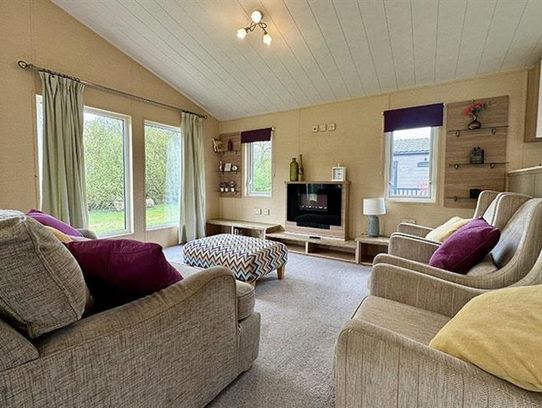 This spacious two-bed holiday lodge offers a stylish, contemporary feel with thoughtful details throughout. Its open-plan design welcomes plenty of natural light, while large windows frame the peaceful surroundings. Clever storage keeps everything neat, and the neutral décor invites your personal touch.
