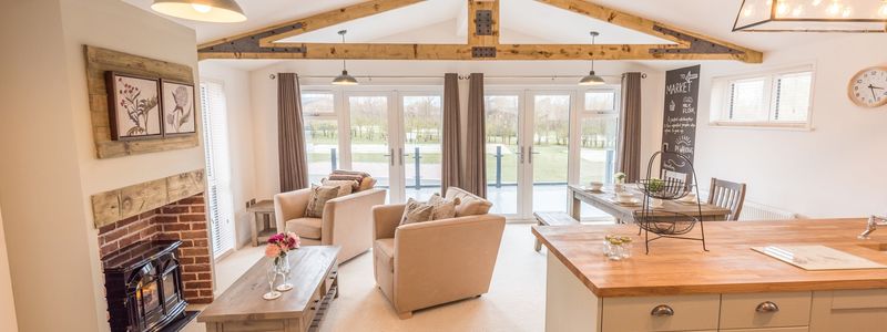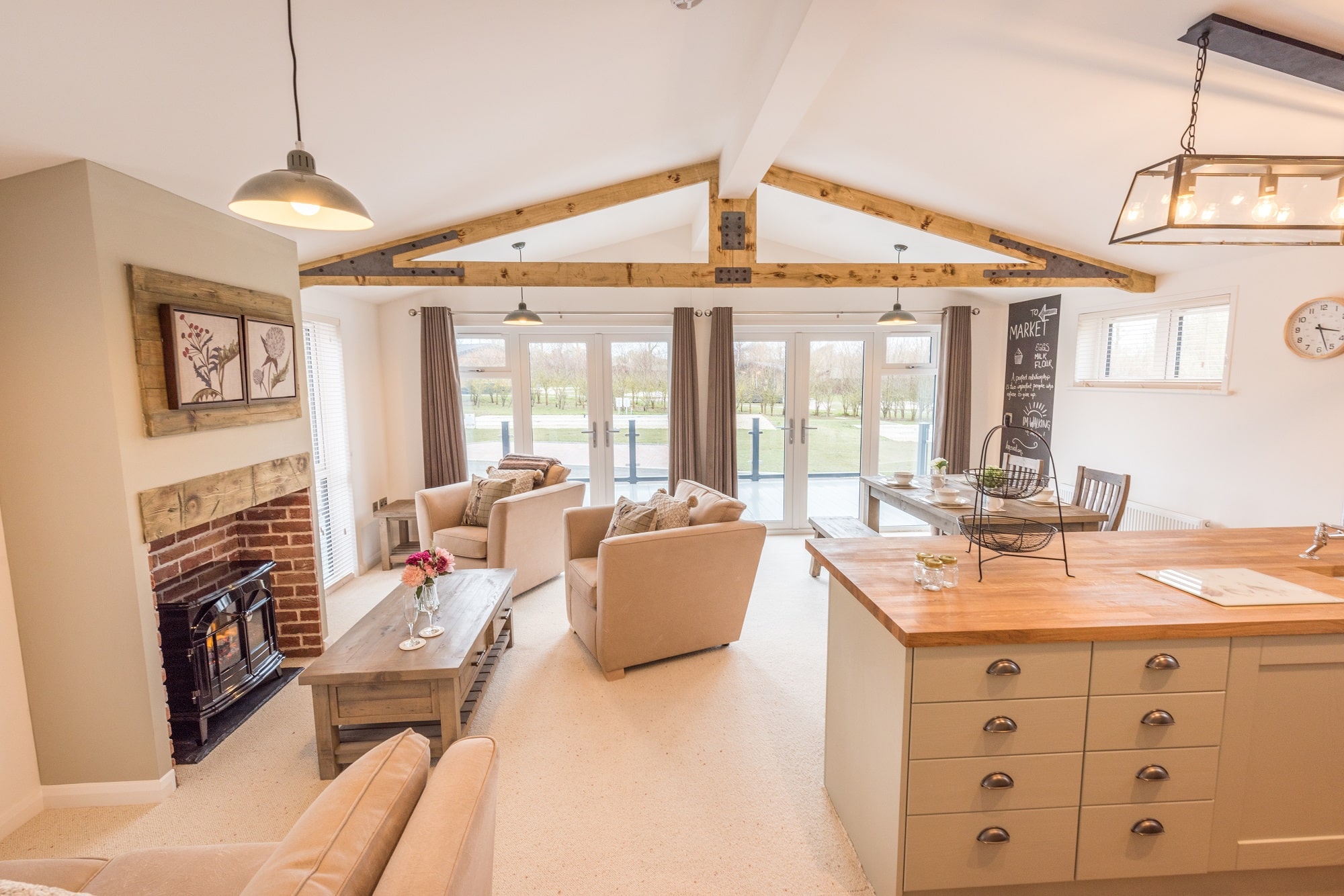 Beautiful pre owned Retreat Lodge, comes complete with decking, sunken hot tub & water views.