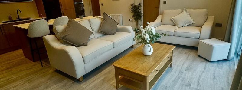 Immerse yourself in the serene ambiance of very own bespoke built Astbury Lodge, with soft earthy tones & leaf feature walls in the bathrooms cresting a soothing environment reminiscent of a tropical retreat.