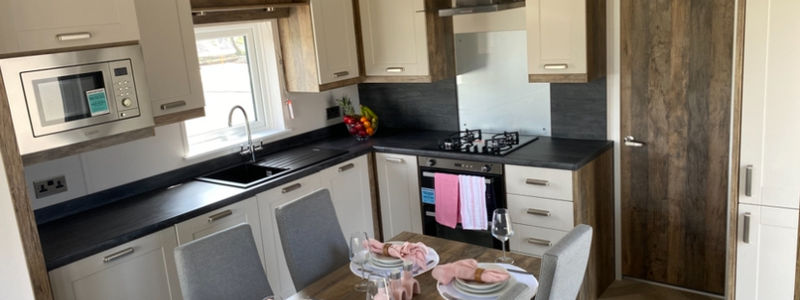 Willerby Sheraton lodge 40x13.5 ft bs3632 specification 2 bedrooms 2 bathroom en suite walk in wardrobe washer/dryer Dishwasher open plan field views from decking