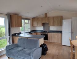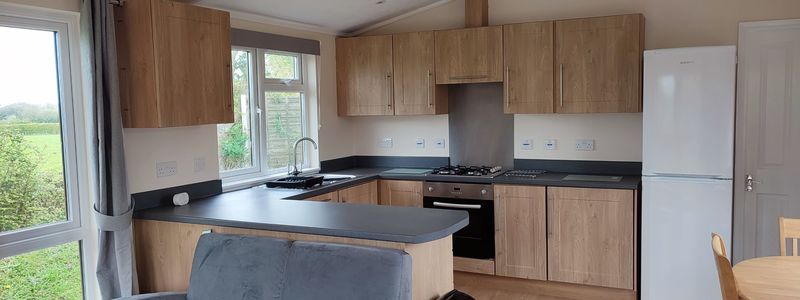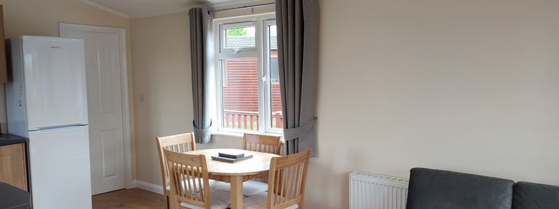 Beautiful 2 bedroomed holiday lodge for sale here at Yaxham Waters. This lodge is in the perfect position on a corner pitch with great views of the rolling fields to the right, the fishing lake in the distance and the Mid Norfolk railway line beyond that. The lodge has a purpose built veranda which has been extended for extra space and comfort. The lodge itself has just been refurbished with a sleek open plan in the lounge, kitchen and dining room. With low maintenance hard wooden flooring making it really easy to keep clean. There are 2 sofas, Tv, coffee table plus free standing dining room table and chairs. As you would expect the kitchen has all the modern fixtures and fittings you would find in your own home. As you walk to the rear you have your 2 bedrooms one with 2 adult sized single beds and the other is a large double room. The family bathroom is located in this area as well. Take a look at the pictures and you will see that most of the rooms all have views!!