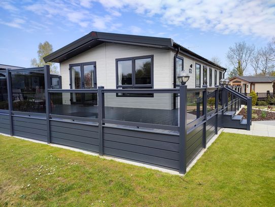Beautiful pre-loved lakeside holiday lodge for sale here at Yaxham Waters Holiday Park set in 15 acres of Norfolk countryside. This lodge has been sited on the edge of one of our 3 fishing lakes and has outstanding views across the water with all the varying wildlife. The lodge has a purpose built composite veranda and ample parking for at least 2 cars. The lodge itself is very modern in its open plan feel, with free standing furniture throughout and french window doors that open on to the veranda, the kitchen is really well equipped with all the features you might have in your own home. To the rear of the property you have your family bathroom together with a spare bedroom that had ample storage and 2 large adult sized single beds. The master bedroom has a kingsized bed again with loads of wardrobes and an ensuite with bath/shower basin and WC. The outlook and position of this lodge are incredible Call Neil on 07805 072 882 to reserve your appointment