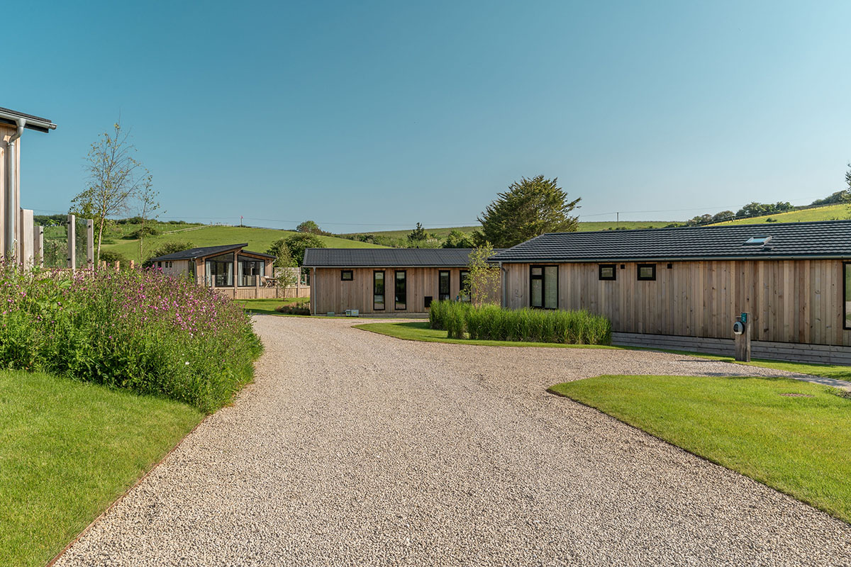 Set within a peaceful countryside setting, the remaining pitches occupy corner positions, offering an added sense of privacy and space. Each pitch benefits from double car parking bays, private footpaths leading directly to the lodge, and generous outdoor areas for effortless relaxation. Hot tubs, spacious decking, EV charging points, and thoughtful landscaping further elevate the experience, creating a setting that feels both refined and naturally secluded.