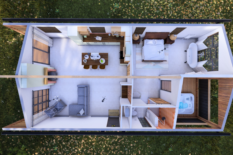 The Fairway blends farmhouse charm with boho flair, offering one- or two-bedroom layouts. Its open-plan design flows with light through full-length feature windows, while a sage shaker kitchen and bold lounge set the tone. Highlights include a showpiece bath, luxe ensuite with dramatic tiles, and a feature deck perfect for coffee or a hot tub. Stylish, individual, and made for modern living.