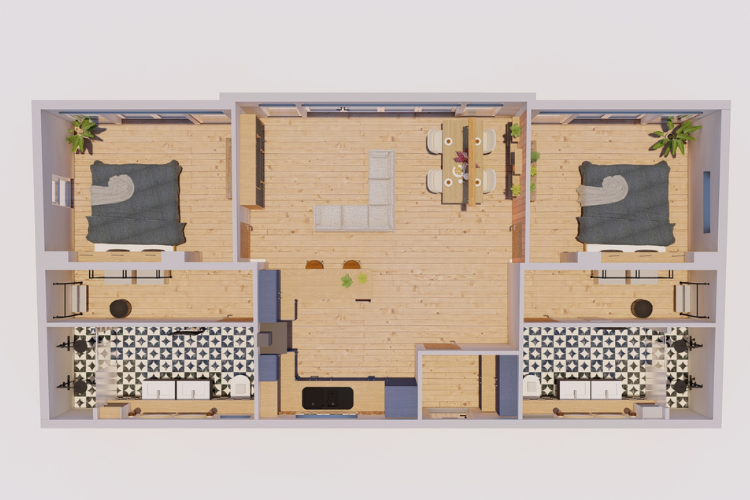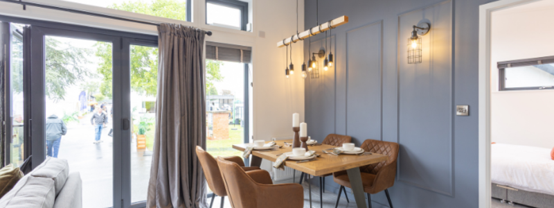 Built to BS3632 standards, The Hawthorne pairs industrial chic with modern comfort. Its centre lounge with bi-fold doors and soaring ceilings fills the home with light, while the sleek kitchen and bar area invite cooking and socialising. Symmetrical bedrooms boast walk-in wardrobes and luxe en suites with double showers and roof windows. Stylish, spacious, and bold—the original, reimagined.